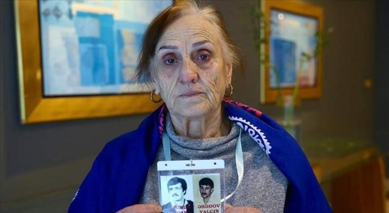 Elmira Kerimova, “Erkekleri başka yerde tutuyorlardı. Eşimi 4 kişiyle birlikte Hankendi’ne götürmüşler ve orada kafasını kesmişler. Kesik kafasını getirip bana gösterdiler. Bakmak istemedim fakat kafama silah dayadıkları için baktım ve saçlarından eşim olduğunu anladım.” dedi.