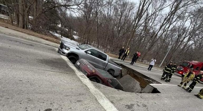 ABD’nin Nebraska eyaletine bağlı Omaha şehrindeki bir kavşakta ilginç bir hadise yaşandı. Kırmızı ışıkta bekleyen iki araç, aniden açılan çukura düştü. O anlar güvenlik kameralarına yansırken, çevredekiler duruma müdahale etti.