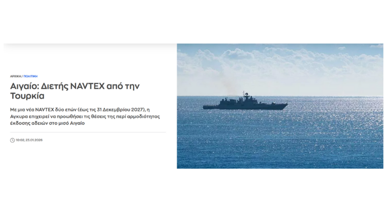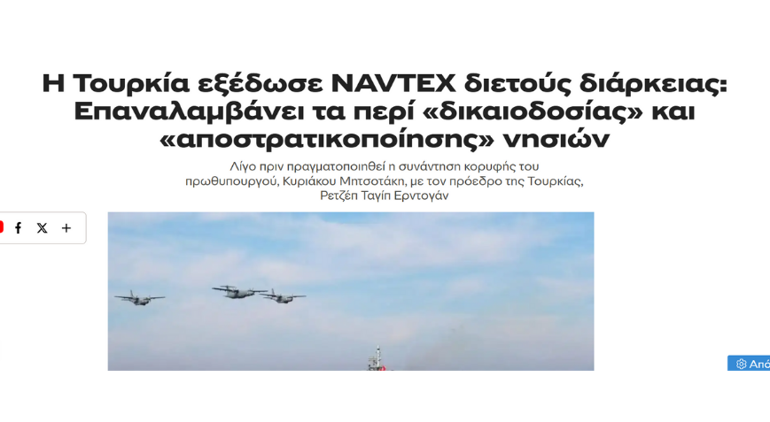 Bir başka haber sitesi Sigmalive’e göre, NAVTEX’ler siyasi ve idari baskıya dayalı bir stratejinin parçası. 25. meridyenin doğusundaki deniz alanlarının Türkiye’nin yetki sahasına girdiği yönündeki algının yerleştirilmesini amaçlıyor.